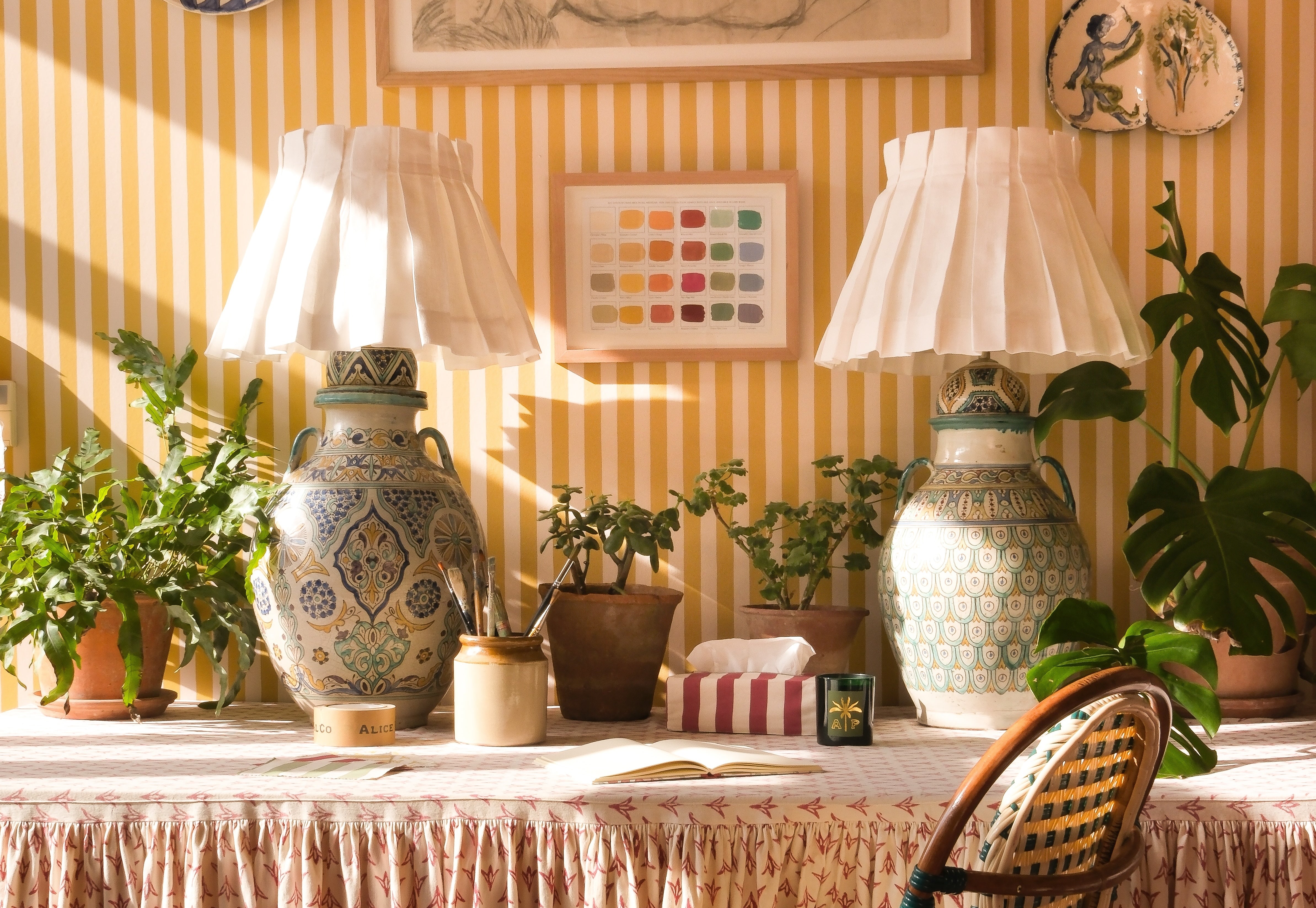 Alice Palmer & Co is a bespoke lampshade brand, founded by Alice Palmer. Bored of the lack of diversity for beautiful lampshades, Alice decided to design and create her own. The delightful lamp covers are inspired by her love of traditional British homes, West Indian villas and Andalusian haciendas. Soft and pretty they add colour, texture and pattern in the most charming way.