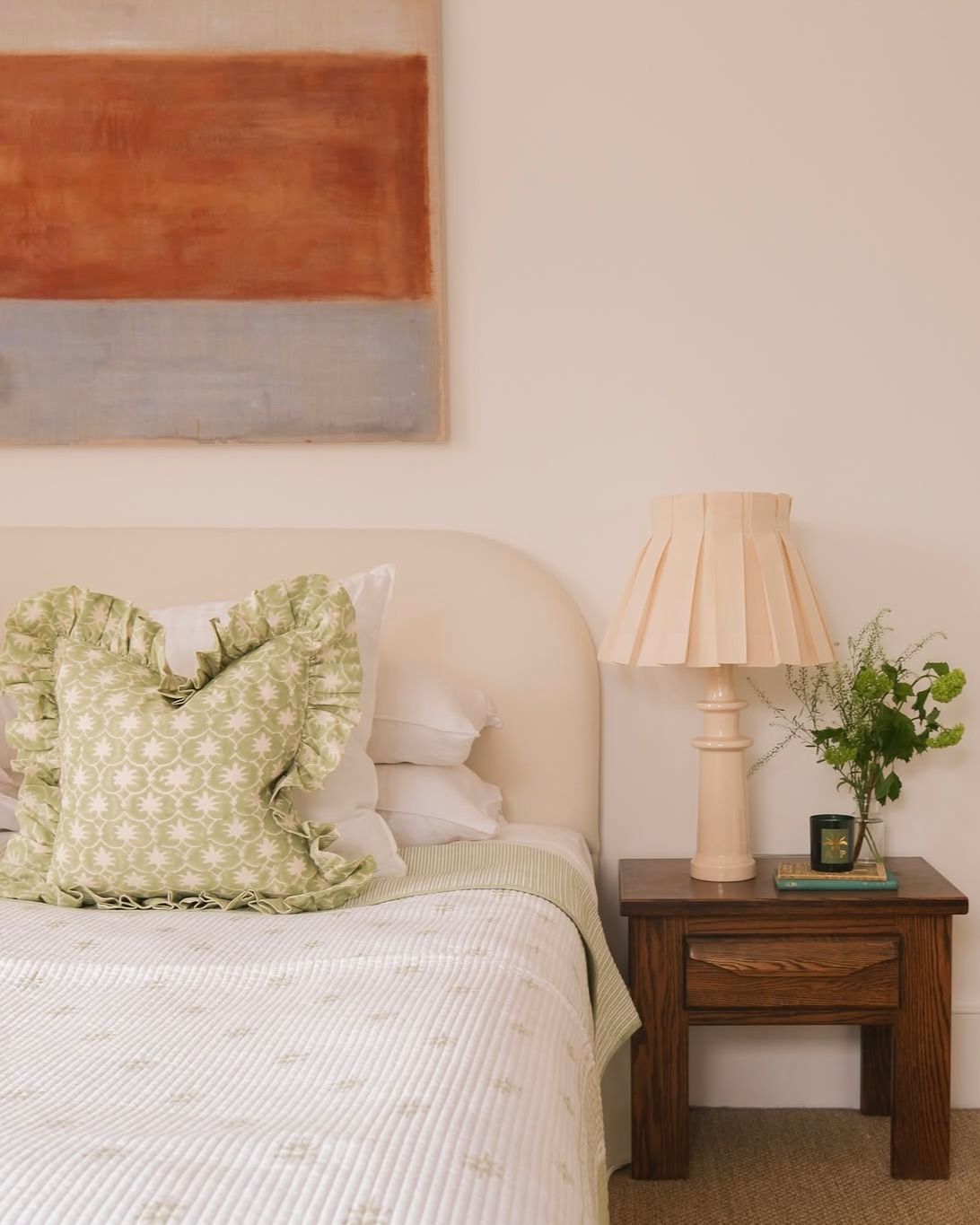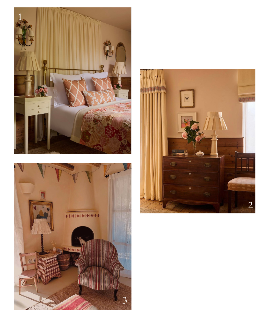 1 & 2: Our Calico Box Pleat Lampshade and Ivory Candlestick Lamp Base looks very at home in this warm, comforting bedroom space. Photo by @boz_gagovski. 3: Cosy Ibizan corner by @alexgorebrowne with our classic Calico Box Pleat Lampshade which works so nicely with the neutral and warm tones in the space. Photo by @barnebygates.