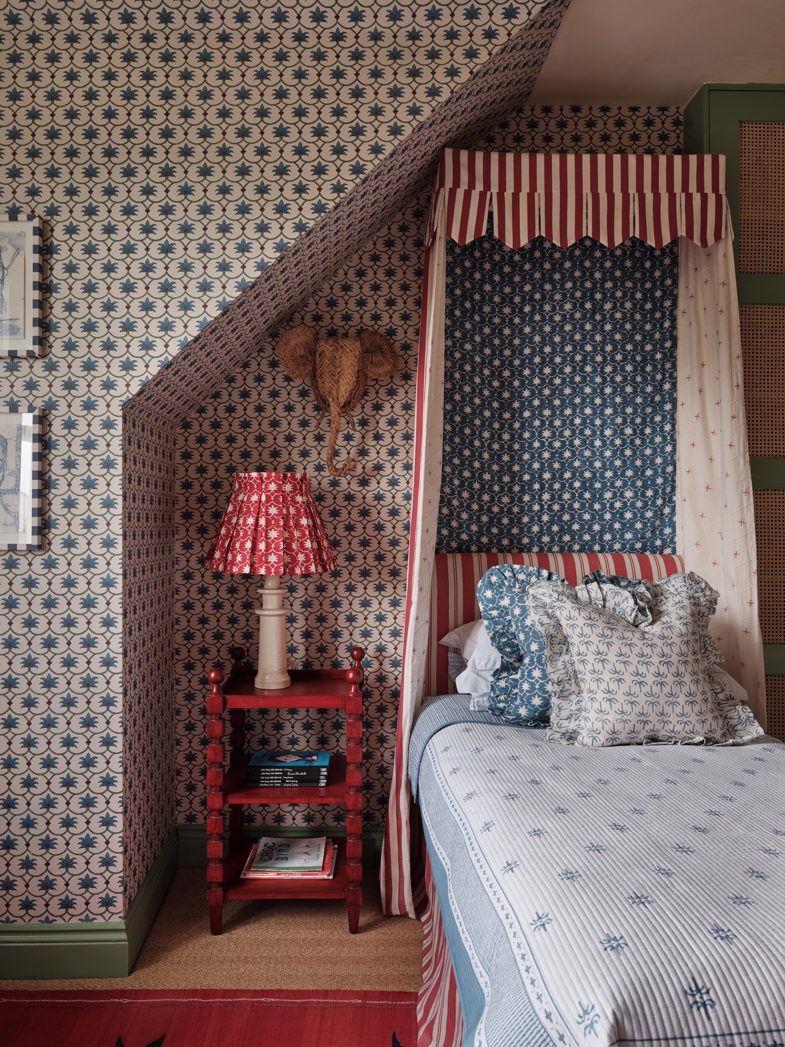 We like to have a mixture of textural, organic patterns with something bold like a stripe to break it up. It's also useful to find a textile, wallpaper or paint colour that you like or already have and pick out a few colours from that or find a complementing colour to bring into the space.