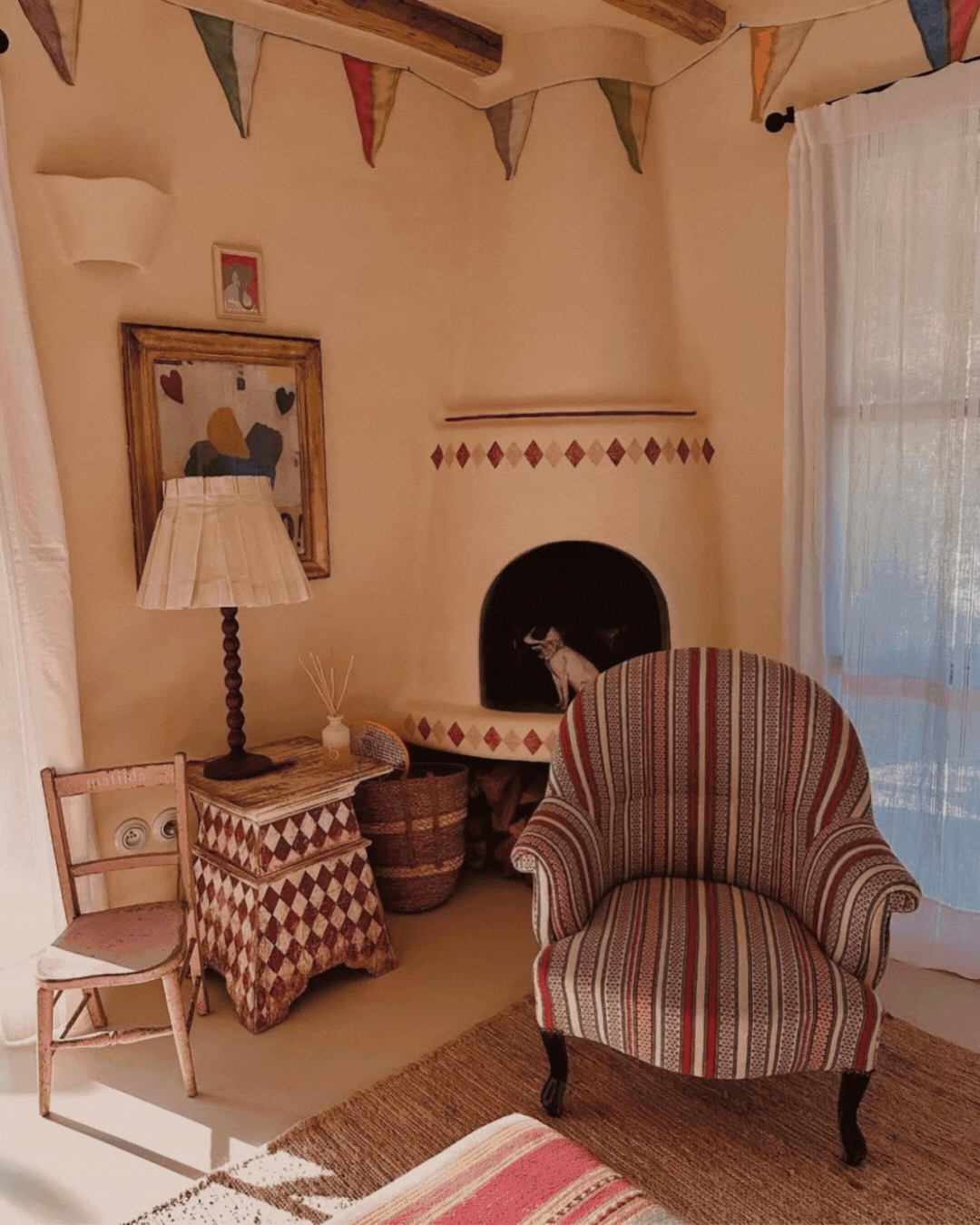 We love our Calico Box Pleat Lampshade in this sitting room by @i_n_s_i_d_e_s in Maine and cosy Ibizan corner by @alexgorebrowne. Our Calico Box Pleat Lampshade is such a fresh addition to any space, especially alongside these rich tones and patterns.