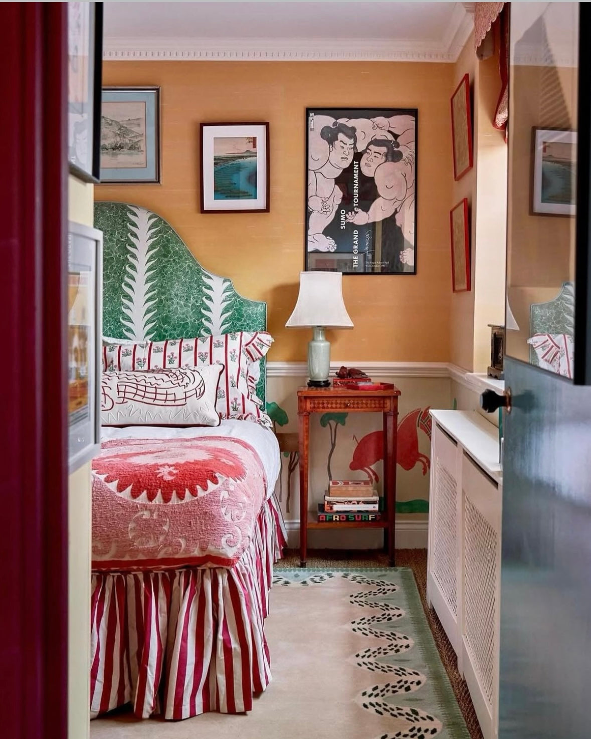 We love this eclectic bedroom designed by @indiasallisholmes from @pelican_house with our Tangier Red Stripe Ruffle Bed Valance. A bed valance is such a smart way of finishing a bed and adding some extra texture and pattern. The stripes also work perfectly to balance the organic shapes throughout the room.