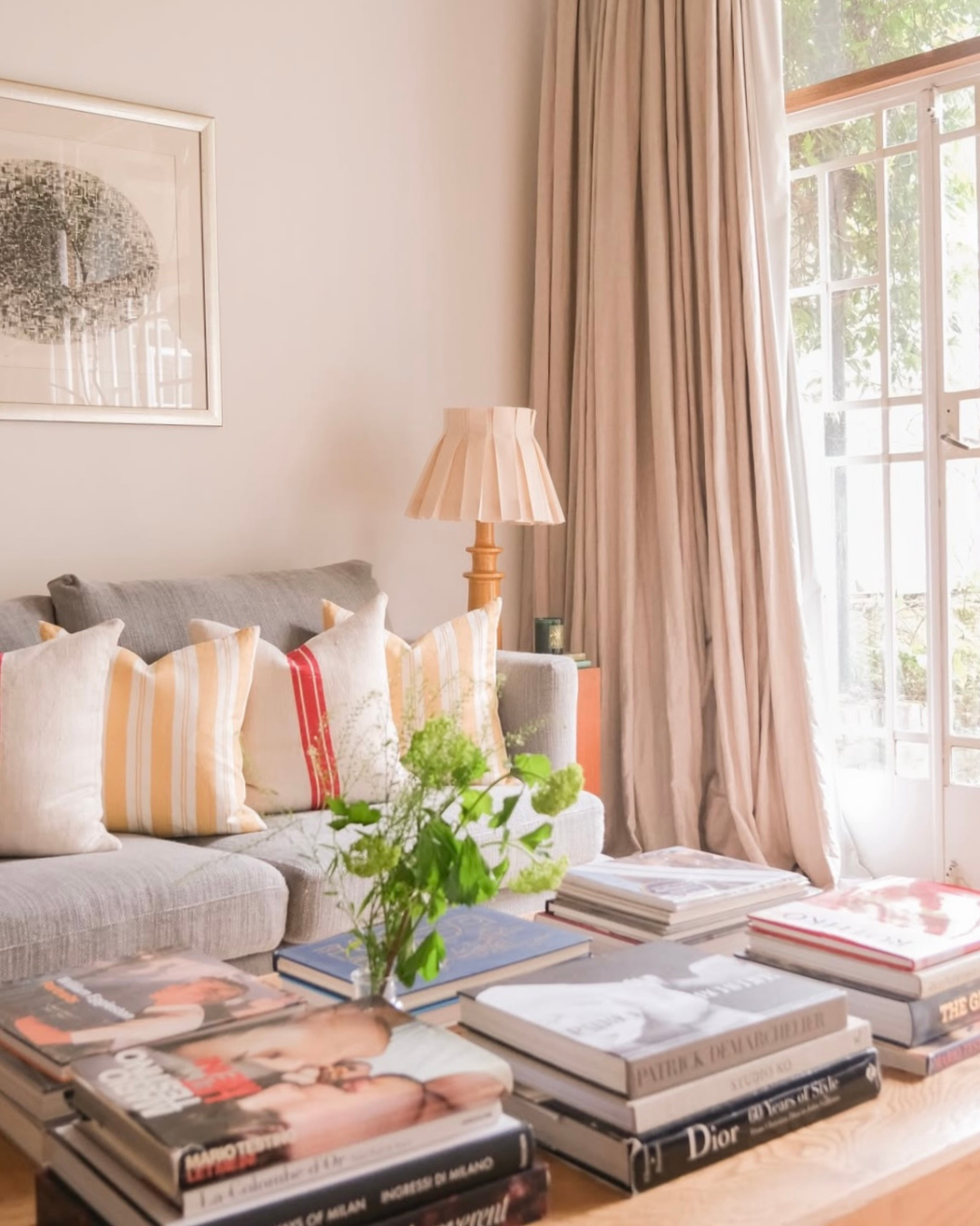 We love the warmth our Mustard Candlestick Lamp Base brings to this chic sitting room. Our lamp bases are all hand glazed and this colourway has an organic speckled texture making it really easy to bring into any space.It's paired with our Calico Box Pleat Lampshade and these warm tones bring a brightness in the sunnier months and such a cosy feel as it gets cooler.