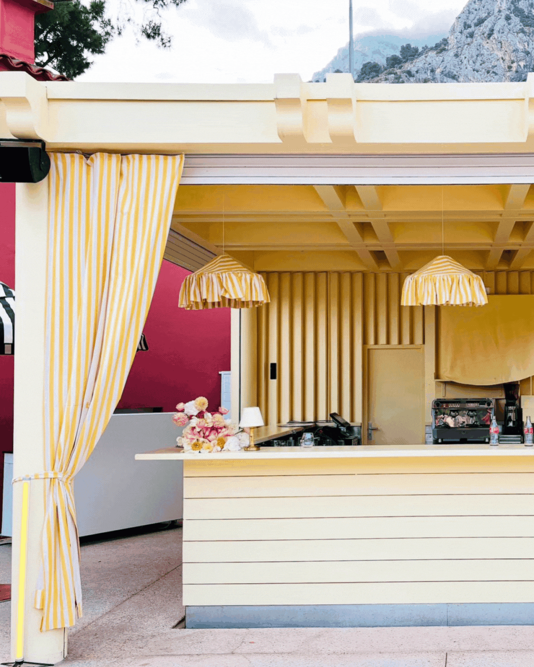 We were so thrilled to see our Tangier Mustard Stripe Wallpaper, Tangier Mustard Stripe Fabric and Tangier Mustard Stripe Pantry Lampshades appear in Charlotte Bickley's Monte Carlo wedding.