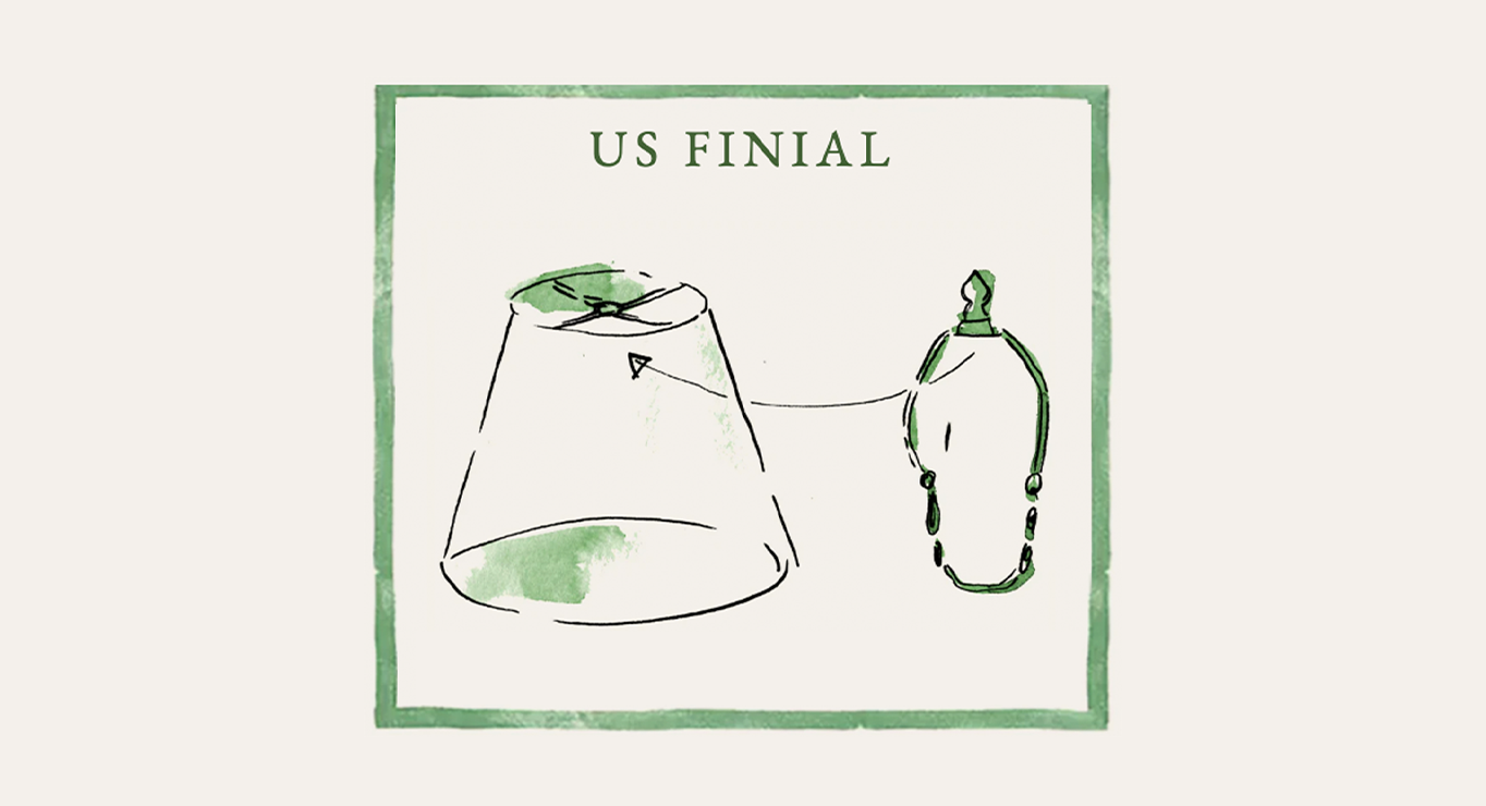 Finial fittings are used mainly in the US and are designed to sit on a harp lampshade carrier.